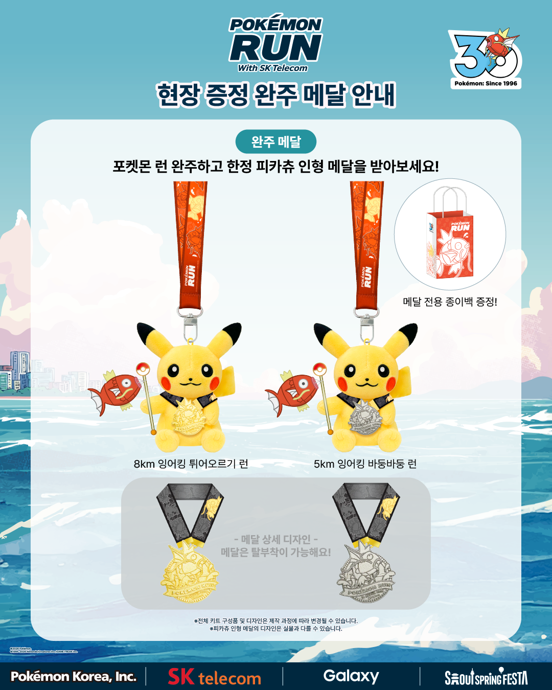 완주 리워드: 코스를 완주한 참가자에게는 한정판 피카츄 인형 메달이 수여됩니다.