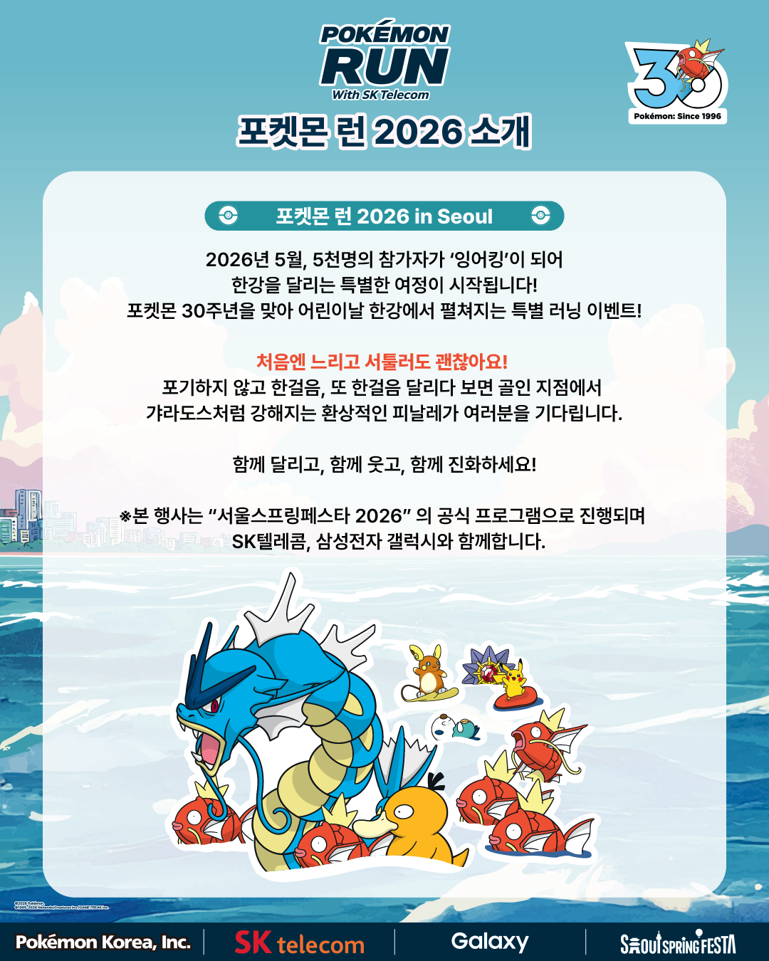 전 세계적으로 사랑받는 포켓몬스터와 함께 서울 도심을 달리는 특별한 이벤트, **<포켓몬 런 2026 서울(Pokémon RUN 2026 SEOUL)>**이 드디어 개최됩니다!